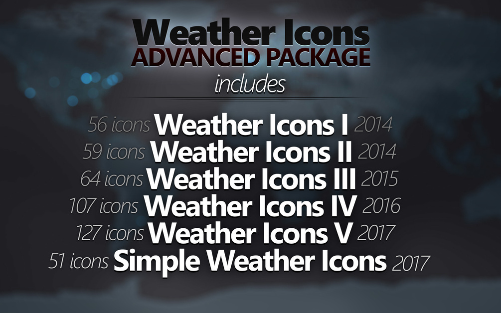 Weather Icons Advanced Package includes the following icon packages & products, all in one purchase in their original full quality & resolution: